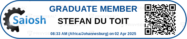 Stefan obtained a B.Comm (Risk) Degree from UNISA in 2007, a Nebosh Health and Safety International General Certificate thereafter, and is registered with SAIOSH – member number 64733201.
